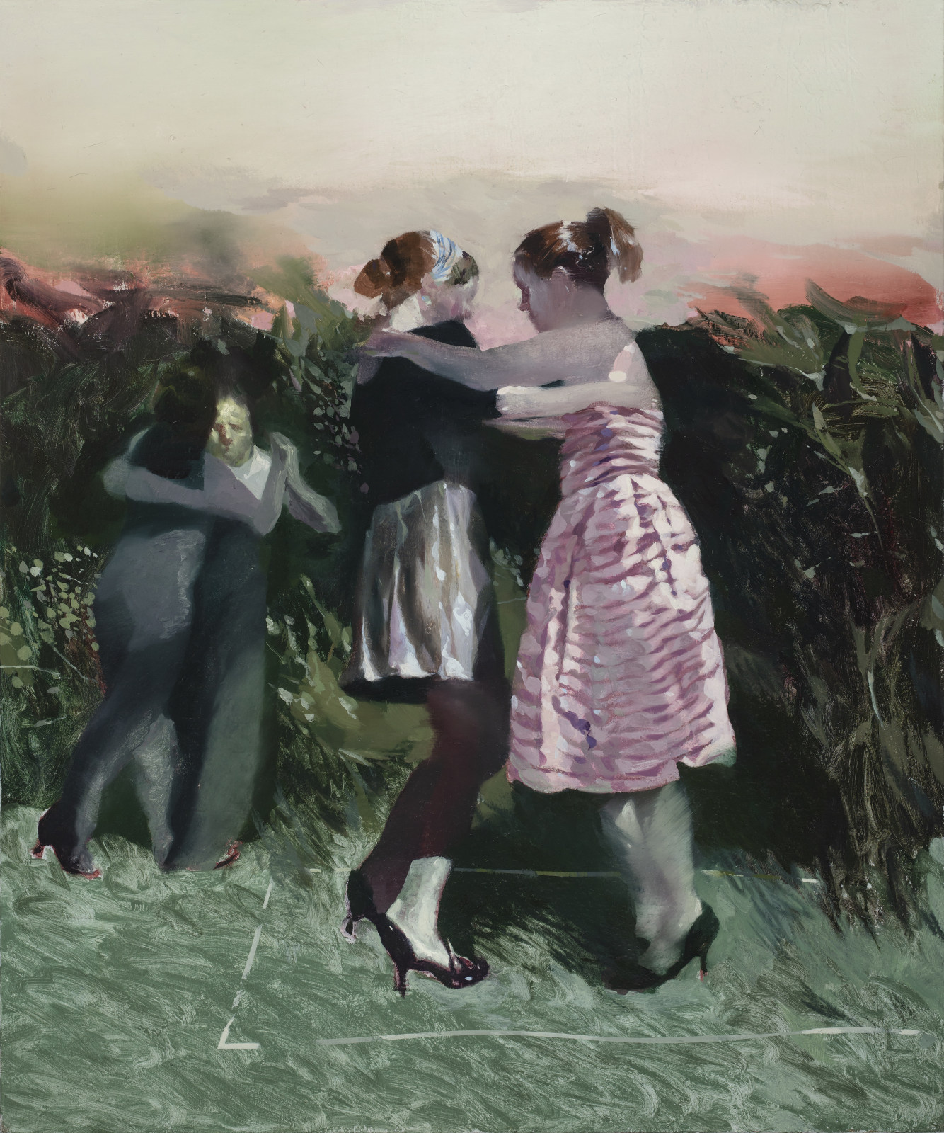 家庭是拉斯·埃林作品中反复出现的主题,似曾相识的瞬间参杂着令人惊讶或不悦的因子。他的绘画总是呈现擦除和破碎的形式特征,纯粹的视觉表达因为有了故事性与诗意的坚实支撑而意味深长。马丁·戈兰的绘画则为人造情景和自然世界创造了一个交汇点,试图在鲜活的形体与它们所处的环境之间开辟一个空间。在这个空间里颜料的感官、不羁与情感潜力的物质存在感超越了图像本身与它的效力,在可见的边缘展现力量。