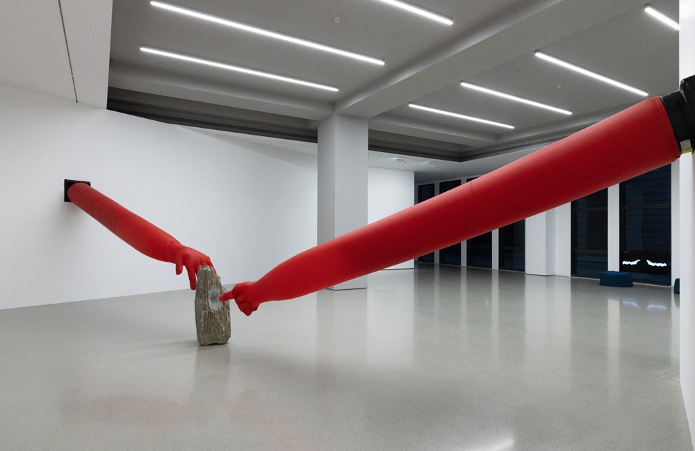 展览的标题“比空气更轻”,于英文中意指热气球和飞艇等飞行器,以及比空气密度更低的气体等。而在此次金和马德的展览中,艺术家们将上述概念以及“空气”这一本不可见之物具体为了可见、可感的形态,并将它们结合到美国手语和口语中有关“吸入”和“呼出”的多重表达方式里。金和马德颇具玩味地将吸气和呼气这一微妙的身体动作转化成充气和放气的行动,继而探讨了有关引起注意的方式、梗图、流行文化中“鼻子呼气”的多重含义、体温及亚历山大·格雷厄姆·贝尔(Alexander Graham Bell)在聋人文化和教育中的角色等议题。