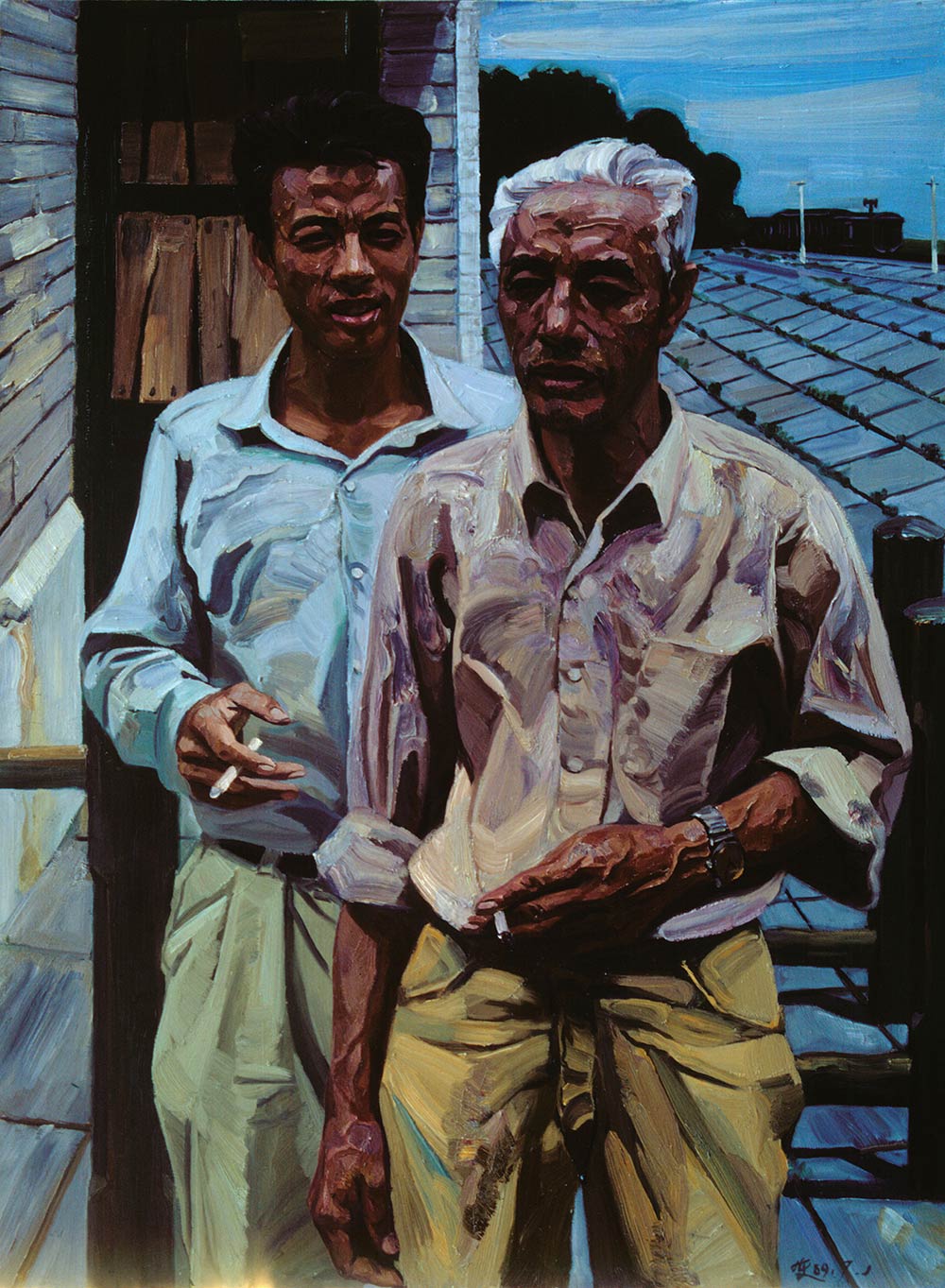 如刘小东自己所说,他画笔下的人,都在自己的空间与时间里,就像我们生活在片段中,不知不觉完成各自的体验。对他来说,绘画是一场先于语言的观看:把熹微的光线,以及情绪、尘土、体温,都牢牢钉在画布上。那是一种面对生活的温柔,也是一种不肯放手的“生命的富足”。
