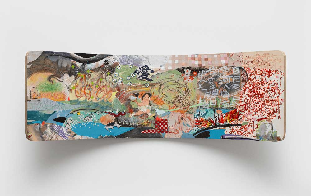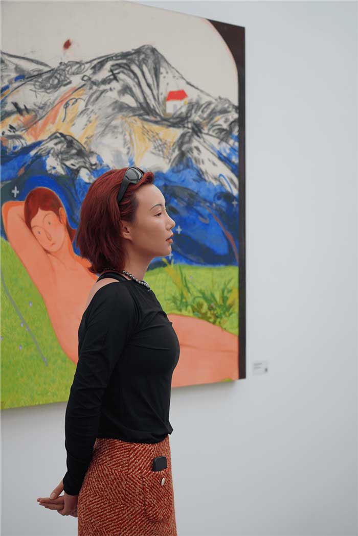 大志的创作风格植根于其个体的经验与阅读积累,以生理与心理层面的双重“破坏-重建”作为艺术实践的核心路径。她将或猛烈、或细微、或缓慢的线条引入画面,于丰富的色彩中勾勒出独属于自身的精神图景。在作品中,她常将来自不同时空的象征意象并置,构建起有序与失控、意识与记忆之间的视觉桥梁,实现一种跨越时空的自我对话。大志擅长运用油画、刺绣、织物拼贴、铅笔等混合媒介,赋予作品丰富的质感与层次。通过“童稚”的笔触与娴熟技艺的交融,她将创作过程视为情感的修复与自我的重建,在裂痕中见证生命的完整。