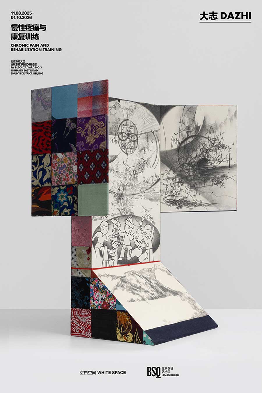 我们高兴地宣布艺术家大志的个展“慢性疼痛与康复训练”将于2025年11月8日在BSQ北京保税艺术区D7栋6层(国家对外文化贸易基地内)呈现。展览聚焦艺术家近三年来与生理性疼痛共处的生命历程,通过其绘画及混合媒介的创作,展开一场关于疼痛、修行与重生的视觉叙事。在身体与时间的裂隙中,大志将创作作为康复训练,探索疼痛如何从肉身的枷锁转化为精神的通道。展览将展出“慢性疼痛”及“康复训练”两个系列中的40余幅作品。
