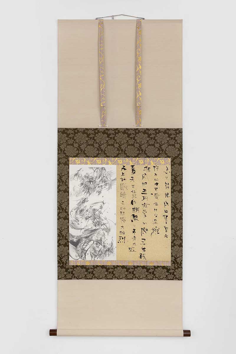 纸上铅笔,宣纸上书法墨水,绢本装裱卷轴
