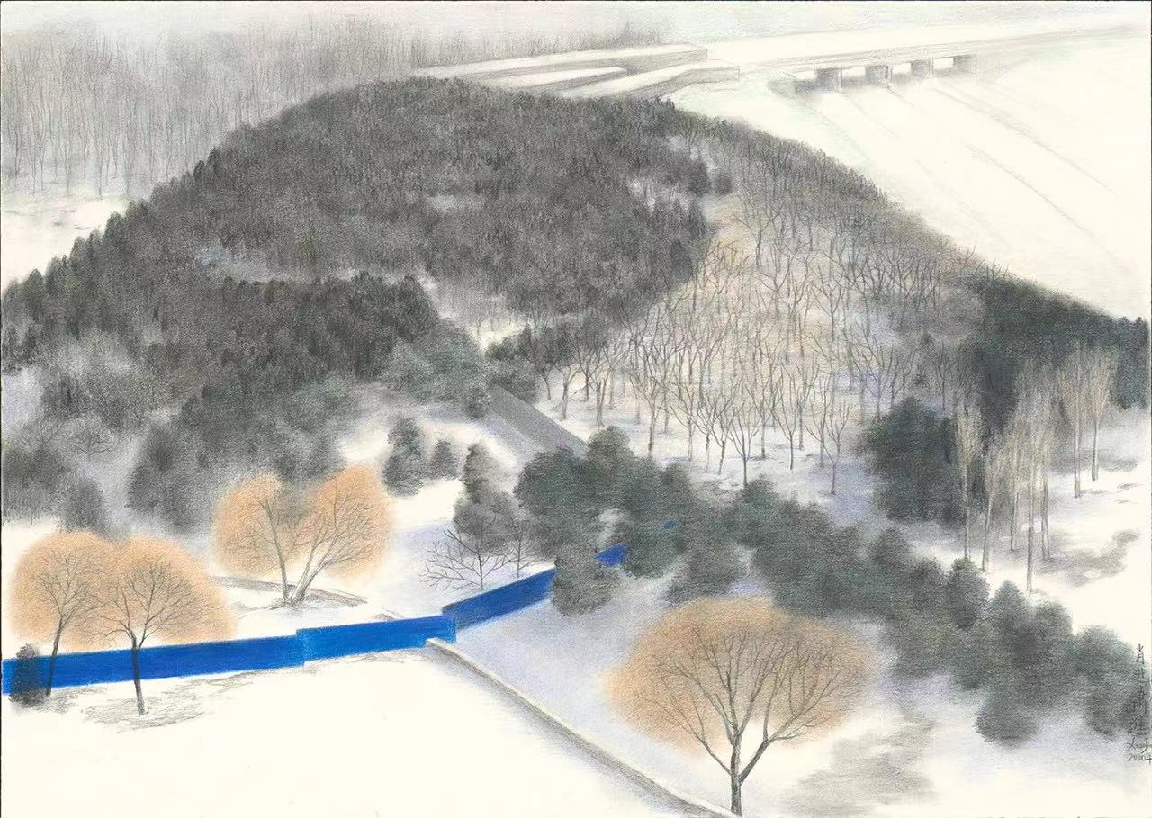 中国曰山水,西画曰风景,视角与心境不同。山水重心游,观照人文的理想界。风景重眼观,着力景色的视觉感。我的这些纸本作品,看似画景,实为写山水心境,摸索用硬笔的痕迹画出柔软的心界。虽是点滴积累,却也在凡事的纷扰中为自己造了方净土以慰心魄,得勉力前行。
