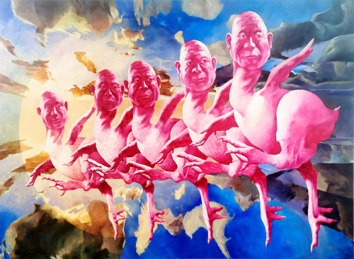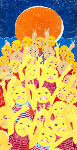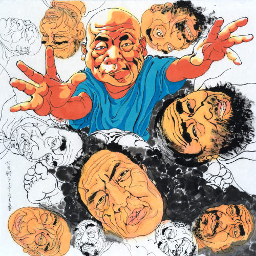 方力钧, 中国 「后89新艺术潮流」先锋。自1990年代初,方力钧以其标志性的「光头」形象,开创了中国当代艺术的「泼皮文化」与「玩世现实主义」(栗宪庭,1991)。方力钧自创作以来,一直以「像野狗一样生活」自醒自寓。「人&像」作为其创作的核心题材,解构性地编织了时代面孔与大众脸谱之间的交流与交融,超验性地传达出时代与生命的痛感与通感。