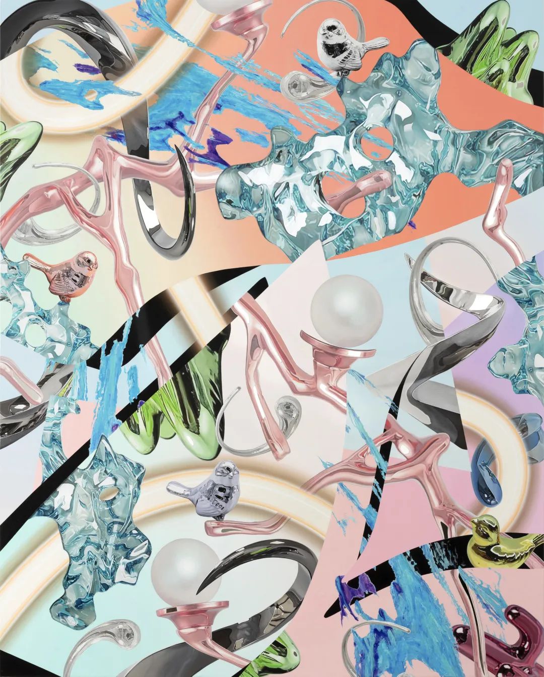 探讨“真实与假象”的同时,透过画面涡流结构中所暗示的商品流通现象,反映人们当下所处的物质世界,并对观众发问:这些所谓“假象”是否才是这个世界的“真相”?