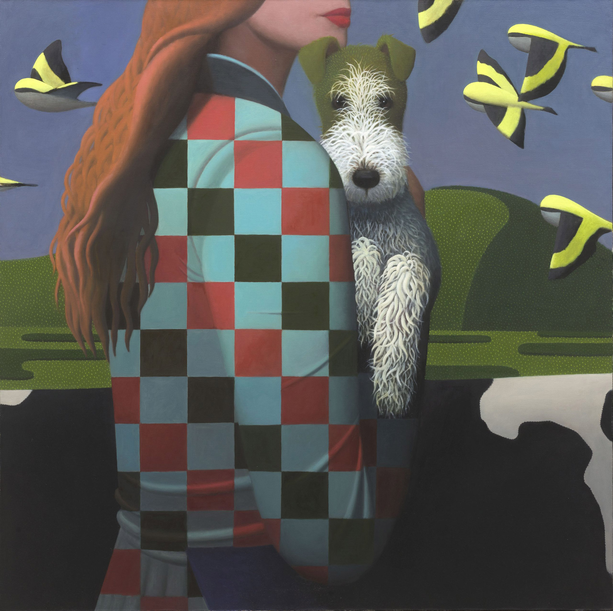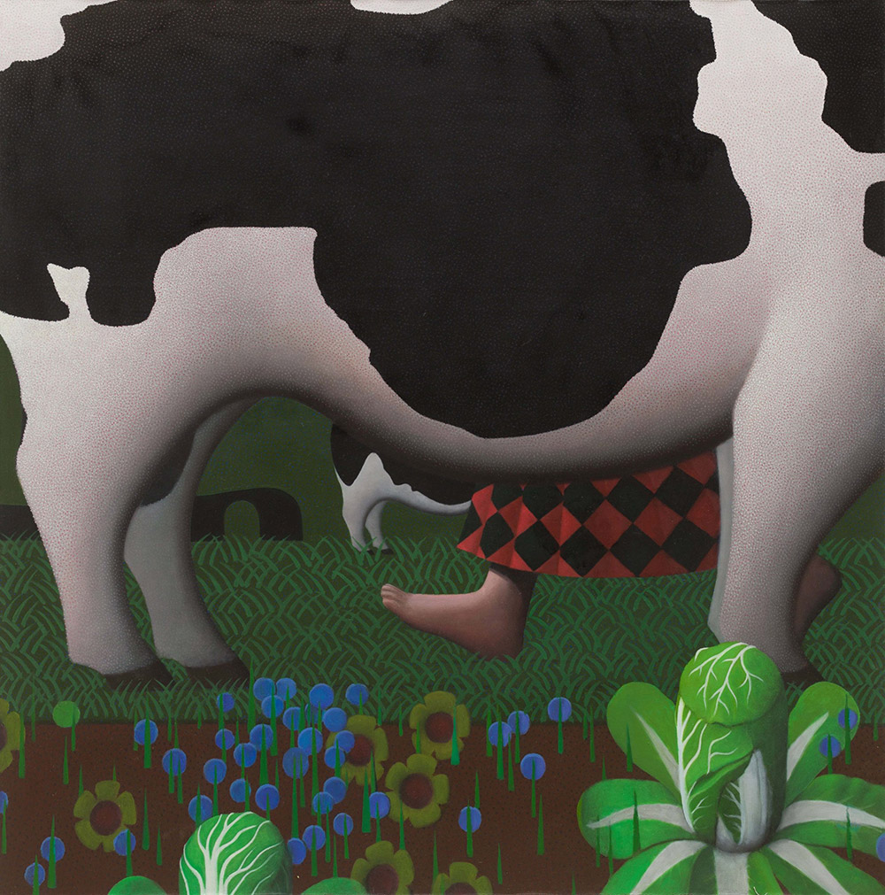 卢豫,1996年出生于陕西铜川,2018年毕业于西安美术学院油画系,现研究生就读于中央美术学院油画系第二工作室。出生于Z世代的卢豫,其成长轨迹几乎与互联网的发展并驾齐驱。互联网庞大的用户基数及其背后不断加载的多元价值观,与虚拟匿名的特性消弭了现实层面中的既有的身份/道德负荷,泥沙俱下的碎片叙事,激发了数字原住民从万千无序中捕捉到有序的狩猎本能。如何创造出高速有效讯息的图像,是卢豫思考绘画的起点。她有意将个人遨游于虚拟界面时的主角思谋,与对当下盛行的避世游戏的感知相交叠。高饱和度的电子色与删繁就简、田园牧歌式的场景营造,使卢豫的作品呈现出极强的辨识度。