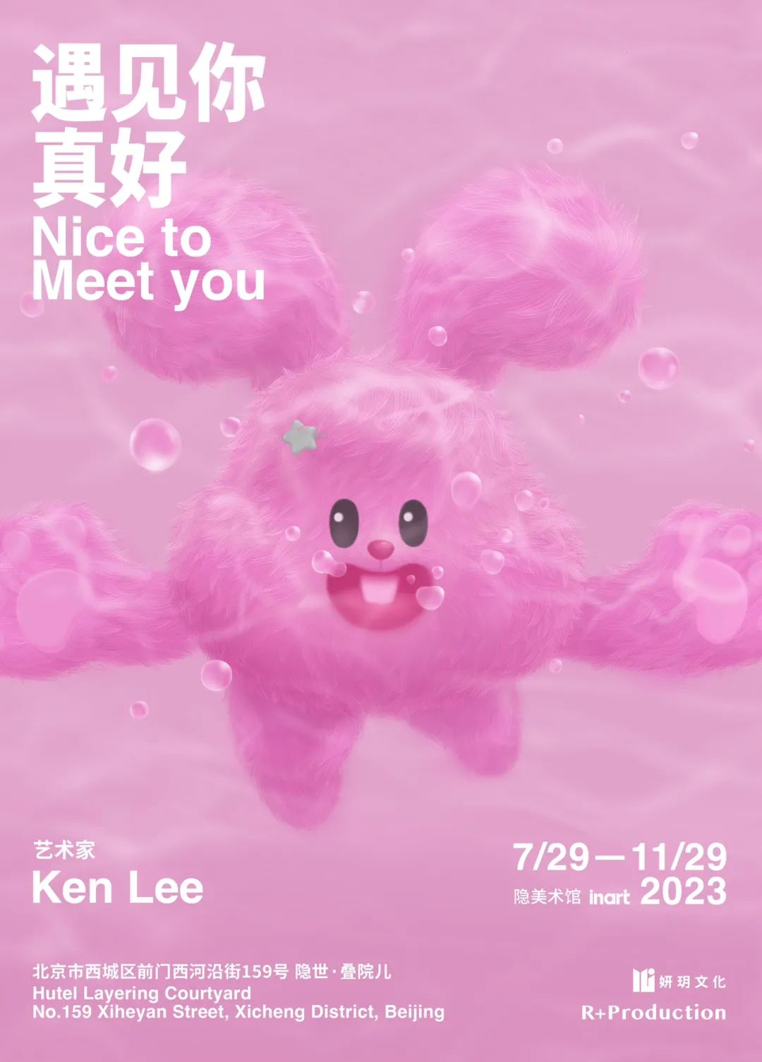 Ken Lee 个展《遇见你真好》将于7月29日在北京隐美术馆举办,展览将持续到11月29日。本次展览将会展出Ken Lee最具代表性的艺术作品,并以此呈现了一场“摩登—胡同”的视觉盛宴。隐美术馆位于北京前门的胡同里,背靠长安街,在这次的展览中,艺术家化身乔乔兔形象与老北京胡同文化相碰撞,在大面积的灰瓦青砖中,巨型粉色乔乔兔空降于此,是一种非常奇妙的遇见,超越时间和空间的对话。