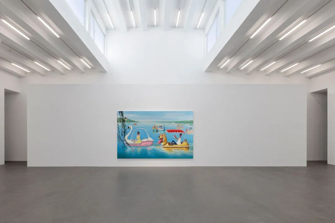 恋爱与婚姻是此次展览中多幅作品的共同主题,以漫画为形式语言,艺术家为西方经典抑或是日常情景中的爱情故事赋予了其特有的幽默与戏剧性。求爱这一主题横跨2006年至2022年,一如艺术家对于反复描绘相似主题的执迷,展览中的“划船”系列可以窥见艺术家对于艺术创作的极致推敲与探究。