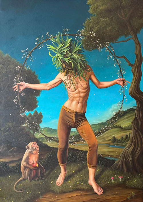 展览并不试图确⽴某种固定的视觉语法,⽽是激活图像内部的不稳定性,以及观看者⼼理的漂移状态。在这里,绘画不仅是形式的回归,更是对当代经验的提炼、质询与重构。每⼀幅作品都是⼀扇精神⼊⼝,引领我们重新感知意识与现实的交界,编织属于当下的视觉神话。