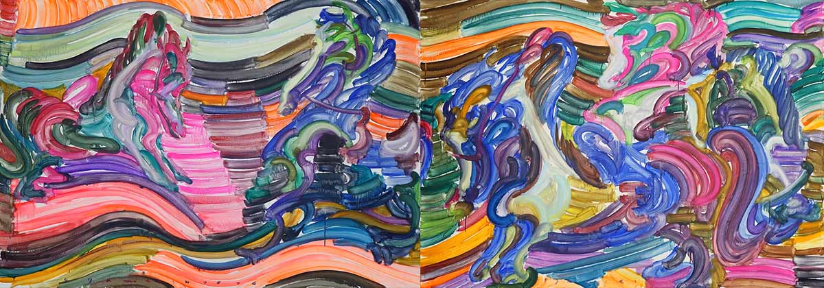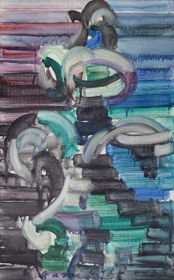 在同代艺术家之中,江上越的创作尤为引人注目之处,在于她所形成的独特艺术语言,以及她长期置身于中国与欧美文化交汇的语境之中,并对这些文化传统中的经典艺术元素进行深入吸收与转化。 她近年的绘画笔触不仅源于在中国学习书法与山水画时所掌握的笔法,更与中国古典美学中「气韵生动」的绘画精神形成呼应,使作品在流动的线条与节奏之间呈现出富有生命力的视觉张力。