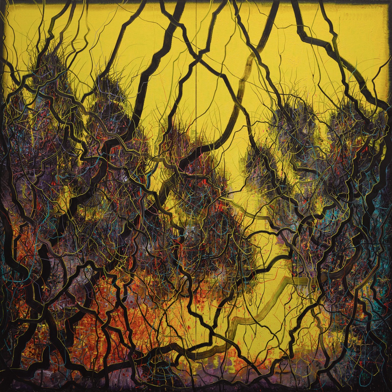 展览囊括了曾梵志的早期习作,其集中创作于上世纪90年代的“面具”系列,2000年开始创作的“抽象风景”系列,以及贯穿艺术家创作生涯的“静物”与“肖像”实践。从中不仅可以观察他长期以来对于取材、构图、笔触及色彩构成等绘画各个环节的考量和实验,也能窥见其个人趣味与观察视角。更值得一提的是,曾梵志创作于2019年至2023年的全新系列 “闪烁绘画” 本次也在浦东美术馆进行了全球首展,该系列的问世也正式标志着艺术家的创作再度迈入一个全新的阶段。