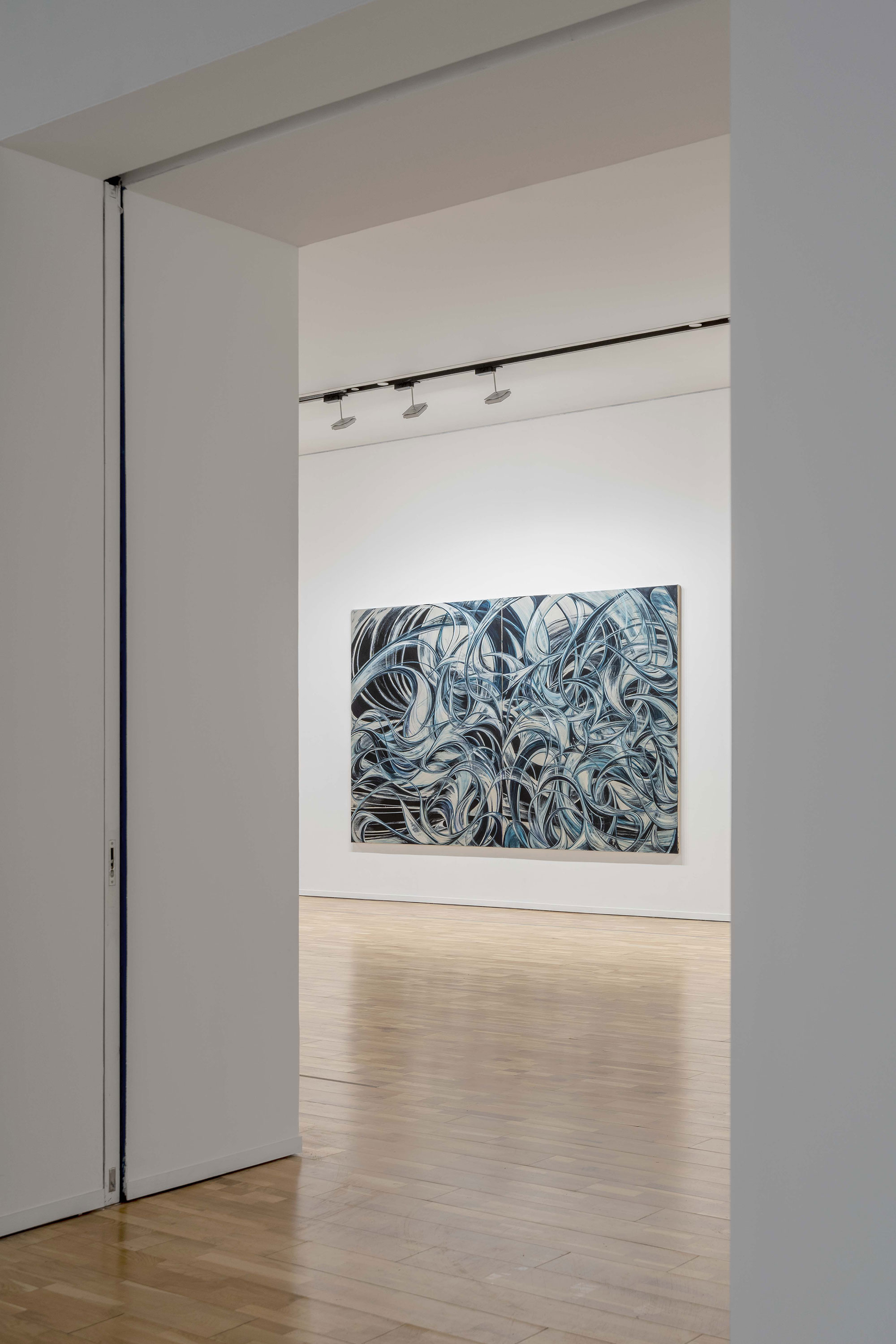 方媛的绘画呈现一种宏大的画面调度和轻盈回溯,就像情感涓涓细流总是之于奔腾宏大历史时空之下,大量纵横的视觉平移犹如人生的历程般,只会继续前进,不会卷土重来。回旋的画面流向如若真切地在此间继续交缠,时空的飞逝感牵挂强烈的个人情感。艺术家感知着、交织着混杂的文化经验和弥散的身份认同,又感同在他乡的遥远距离的涉身体验,使她的生理感知与作为行动的画面不能放下一切再次交缠,只能选择沓飒地延绵、与过去紧紧纠缠却也总是紧紧咬住未来,逐渐膨胀,直至无限。