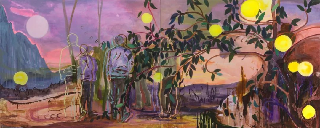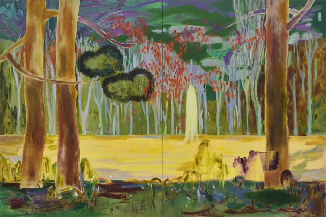 驻留期间,许宏翔所体会到的疏离感激发了他对人与自然、人与人之间关系的探索。这些带有探索意味的小幅作品位于二层筒厅内,它们就像一种提示或是“种子”启发了许宏翔回国后的创作。他的工作方法从过去用绘画审视图像到现在的基本脱离图像,是对过往创作习惯的一种跳脱——从艺术本身纯粹的理论走入了实践哲学的领域,让他的绘画跨越了属性,关注人类、自然、动物,当然也包含了他自己及周边的我们,作品从更感性的层面展开,变得更加放松、自由,正如展览的主题“逍遥”所寓意的那样,传达出一种悠然自得、挥洒自如的感觉。