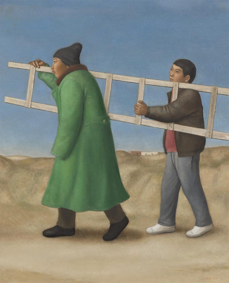 段建伟的创作生涯甫一开始便有意选取了中原地域的群体作为绘画的主角,他自九十年代便开始对艺术史中的图像进行图式分析,经过三十多载的历程,他的作品融汇了文艺复兴早期的造型处理,同时有效剥离了宗教性的庄重,内化形成世俗与日常中带有仪式感的古典气息,历久弥新。可以说,段建伟的作品深入刻画了中国民族性的内在根源与美学特征。在段建伟的作品中,艺术家有意无意的置入了一些象征性的元素,对于这些元素长时间的描绘不仅仅是因为从绘画的角度,艺术家需要不断地就造型问题进行内在剖析。同时也暗含着艺术家通过不断回溯过往,回望故土,进而更深刻地走向自身内部世界的一个期盼。