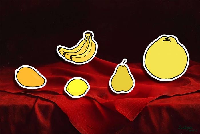 作为冲锋者好像需要在快速的信息时代下推陈出新,正如《愚人》这件作品描绘的反复嵌套:画中之人正手握一只画笔,右下角一只手伸出来打卡拍摄这一被创造出来的画面,而手机上显示的却是一张ai生成的图像。站在画外的观众可能会再度拍摄、传播,形成一个“Mise en abyme”(镜渊),它是对一个艺术整体图像的反复内部复制,从而形成一系列无限递归、最终消失于视野的图像——就像一个人站在两面相对的镜子之间所看到的情景一样,最终一切落入罗兰·巴特所说的:“虚无从未如此确凿。”